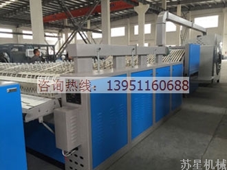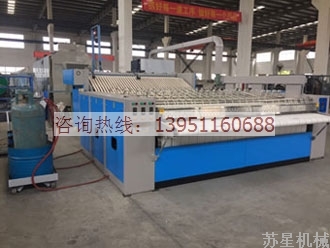 蘇星燃氣(天然氣,液化石油氣)直燃式節(jié)能環(huán)保型燙平機,無須鍋爐,耗能量是通用燙平機的三分之一。當(dāng)布草含水率≤61%,熨燙速度為25-30米時,三滾燃氣消耗量僅4.62Kg/h,平均到每滾只有1.54Kg/h.